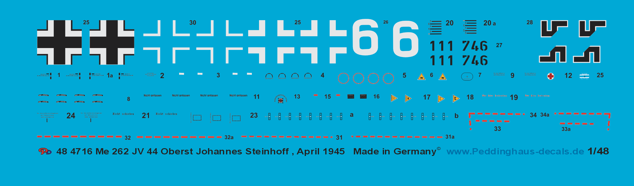 Peddinghaus-Decals 1-48 4716 Me 262 Oberst Johannes Steinhoff JV 44 ,April 1945